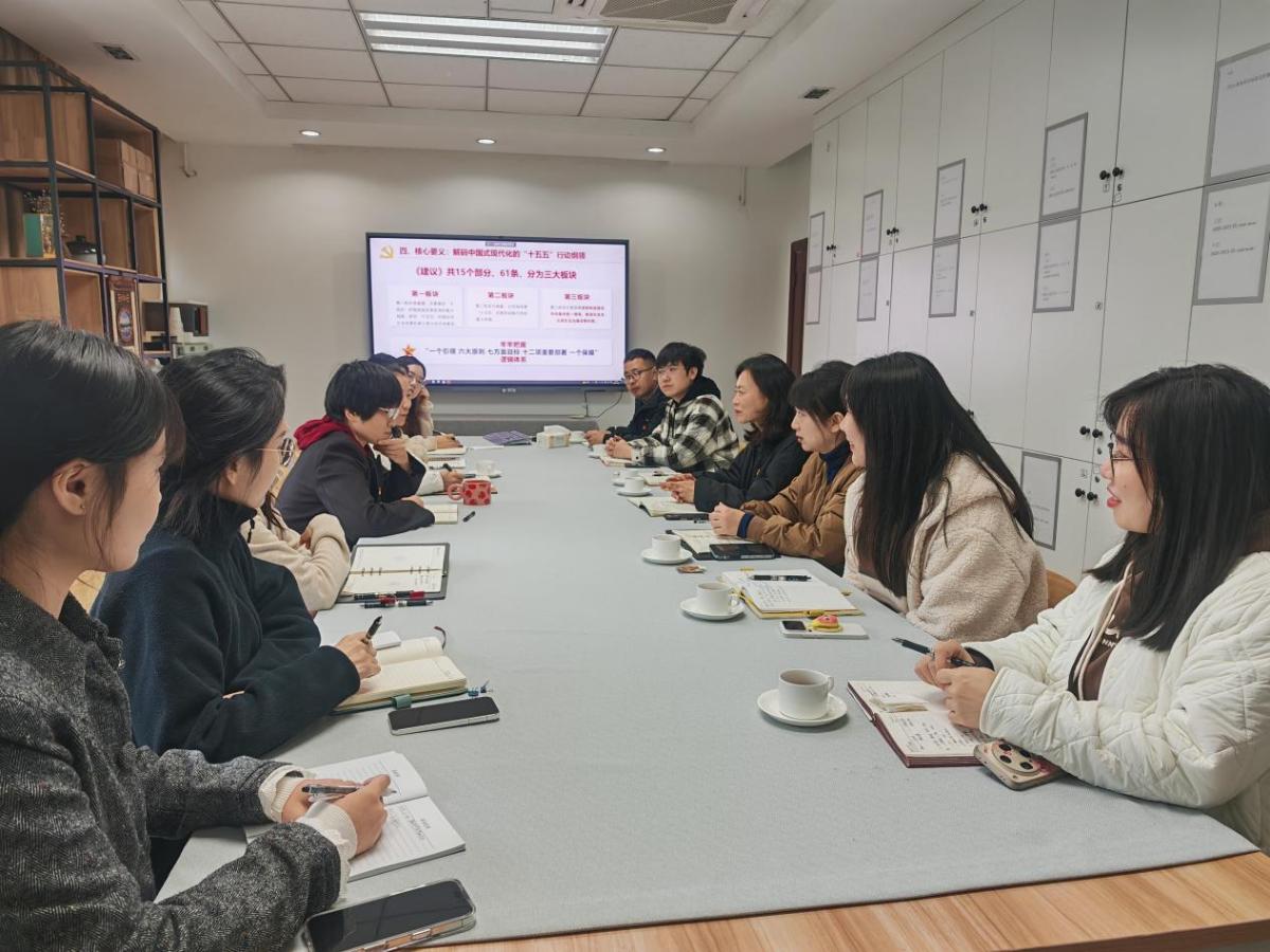 随后,薛红书记带领双方参会人员共同学习党的二十届四中全会精神。她围绕全会提出的重大部署与核心要义,结合高等教育发展规律与统计数学学科特色,解读了全会精神对高校党建与育人工作的指导意义。她指出,要把学习贯彻全会精神与学院中心工作紧密结合,以党建引领学科建设、人才培养、社会服务等各项工作提质增效,为国家高质量发展提供智力支撑与人才保障。