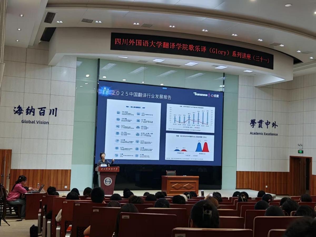 10月16日下午,传神语联网网络科技股份有限公司副总裁、中国翻译协会理事及医学翻译委员会副主席闫栗丽莅临我院,开展题为“AI重塑翻译行业”的专题讲座,与我院师生分享了一线翻译企业现状和发展方向。本次讲座由四川外国语大学翻译学院副教授唐昉主持。