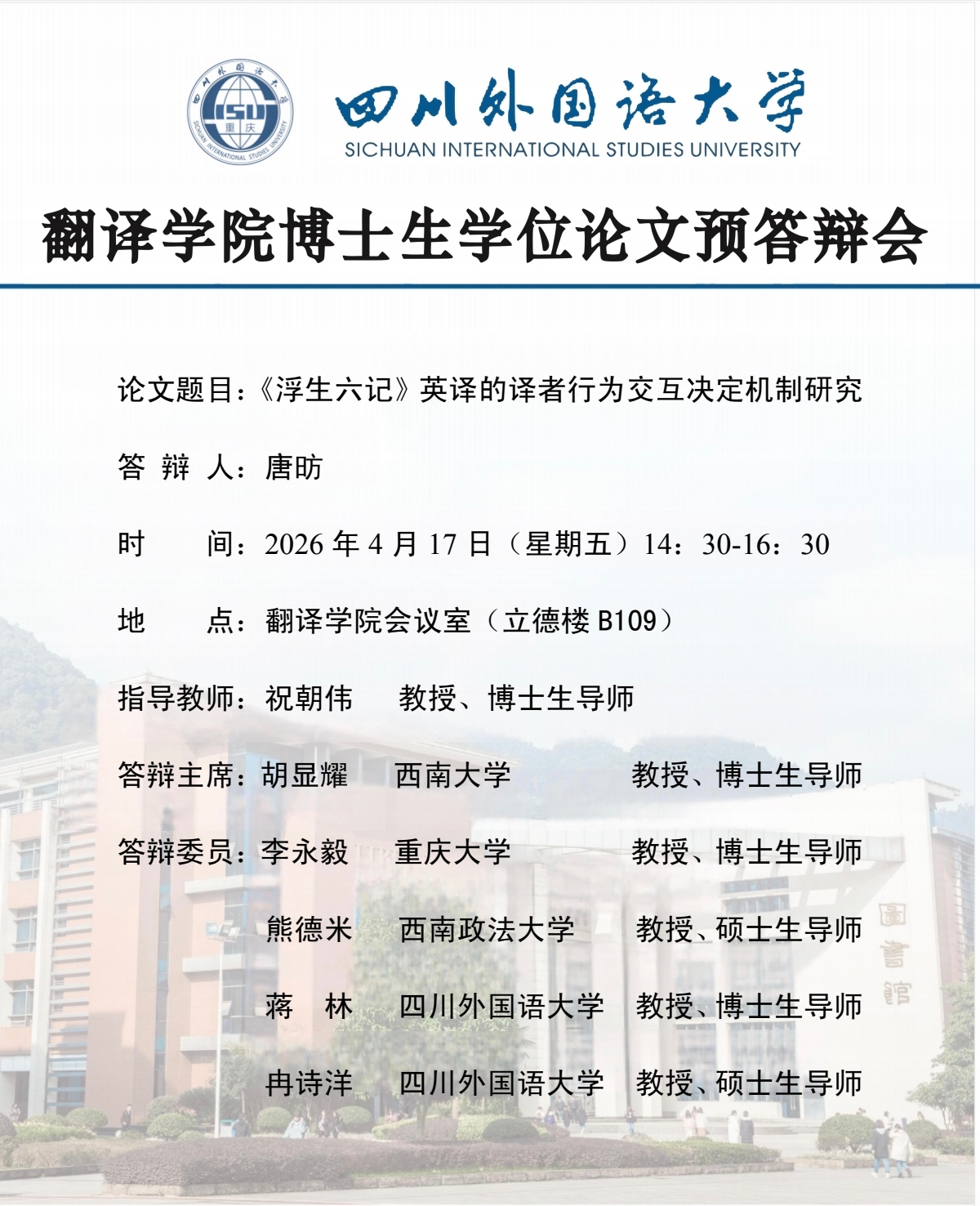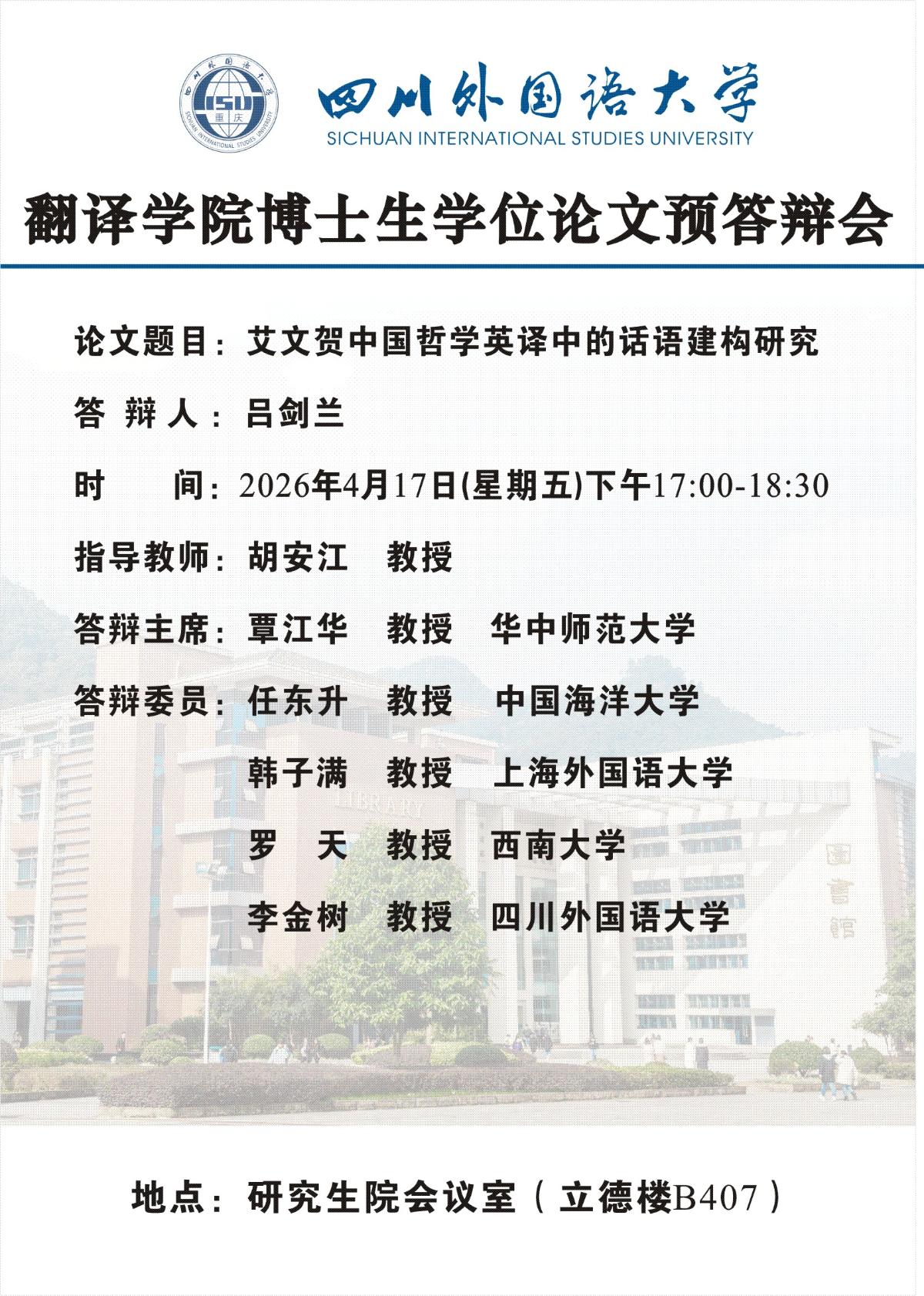下一篇:【歌乐译系列讲座(三十九)预告】廖美珍:追求不隔的境界——《人间词话》与《在亚当之前》的翻译