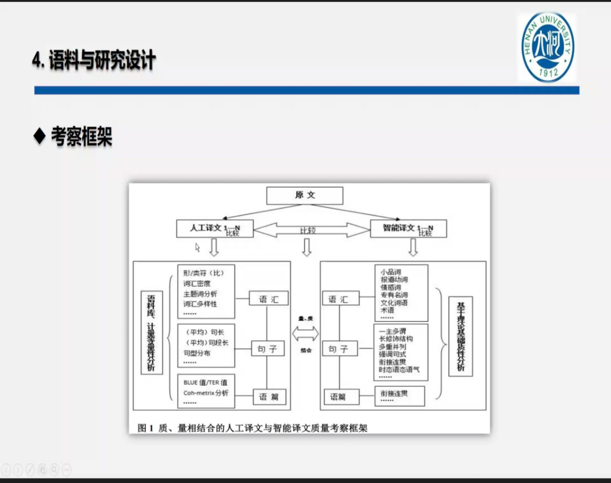 在分析研究现状时,刘教授借用了多位学者(如王克非、叶子南、于蕾等)的观点指出,当前AI翻译在汉语处理上仍存在明显短板,如意识形态和文化隐喻的处理。他还指出,在翻译质量研究定性分析远多于定量分析,出现严重失衡,且工具单一、缺乏三角验证和多维量化分析。