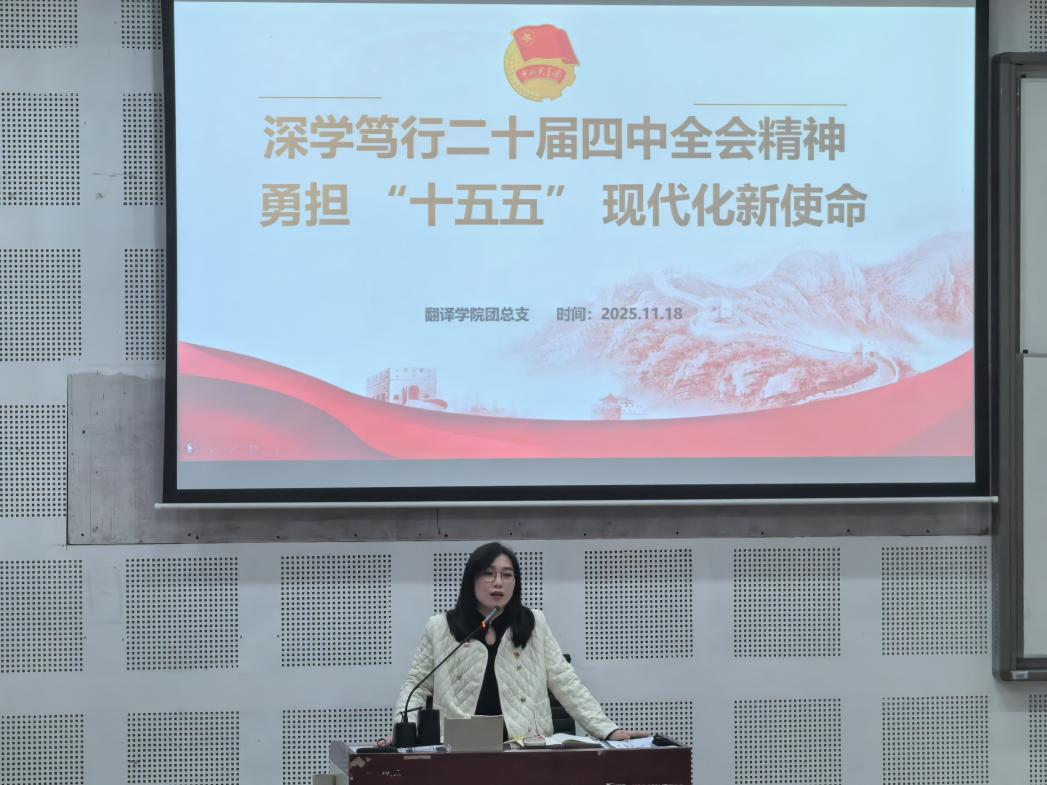 为深入学习贯彻党的二十届四中全会精神,用党的创新理论武装青年学生头脑,推动理论教育、专业学习、就业实践与志愿服务深度融合,翻译学院团总支于2025年11月18日在歌乐楼A2-2教室举办2025-2026学年“青马工程”培训班开班仪式暨首场系列宣讲活动。