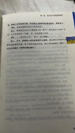 原文:阿德勒心理学就是勇气心理学。你之所以不幸,并不是因为过去或环境,更不是因为能力不足,你只不过是缺乏“勇气”——缺乏“获得幸福的勇气”。