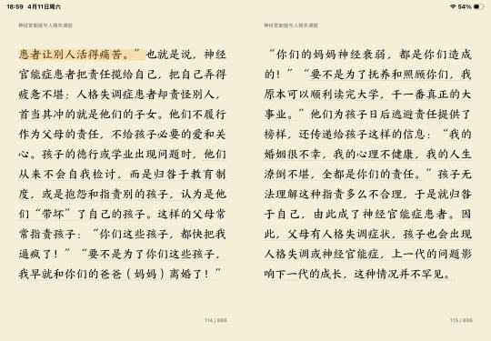 今天我继续往后读了两小节,了解到“神经官能症”和“人格失调症”这两种与心理相关的症状。