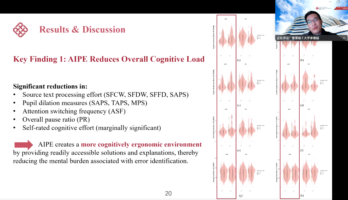 李教授强调,AIPE通过提供实时解释和建议,有效降低了译者的外部认知负荷,但同时可能增强相关认知负荷,其认知效益需结合翻译方向性和质量要求具体考量。研究结果再次印证,高质量翻译任务中人类专业知识的核心地位不可替代,AI应定位为译者的“协作伙伴”而非“替代者”。未来翻译技术发展需致力于构建以人为中心的AI系统,实现人机能力的优势互补。