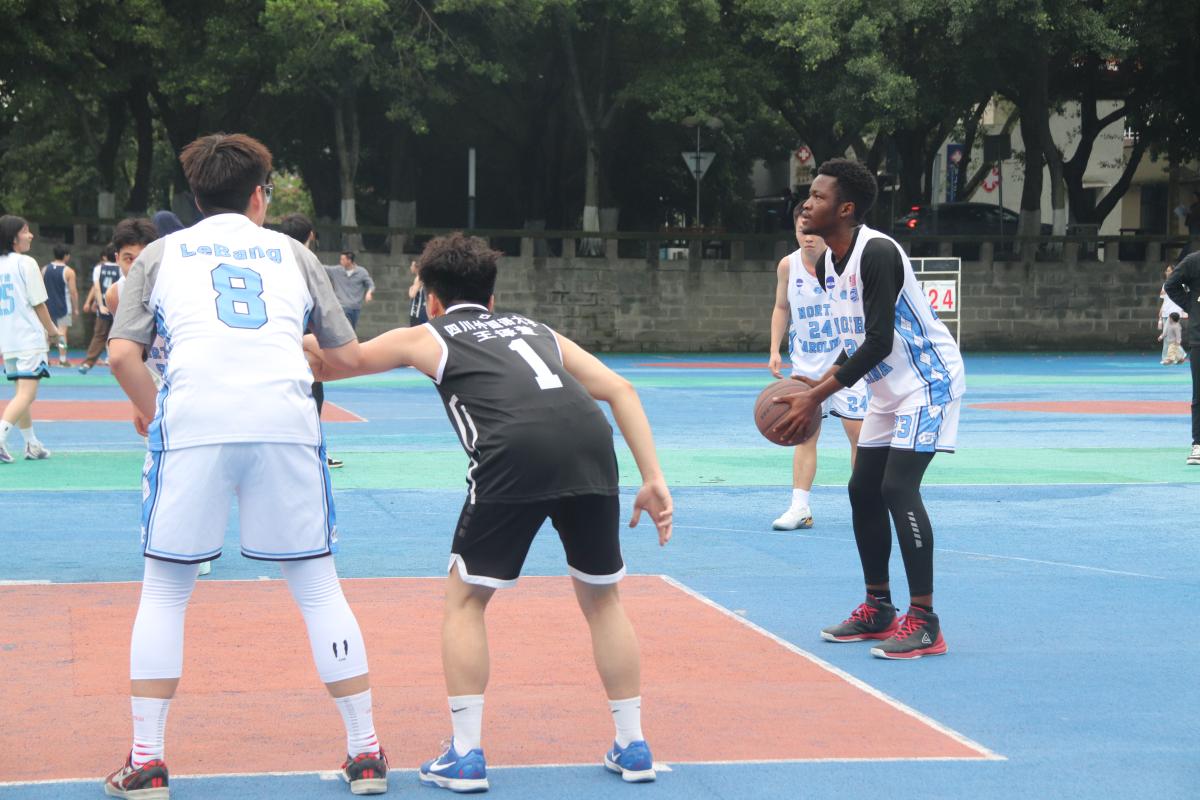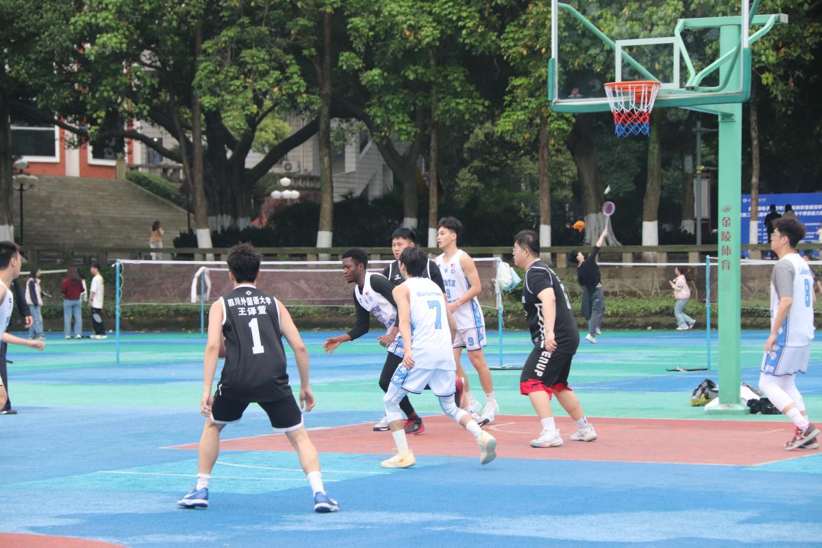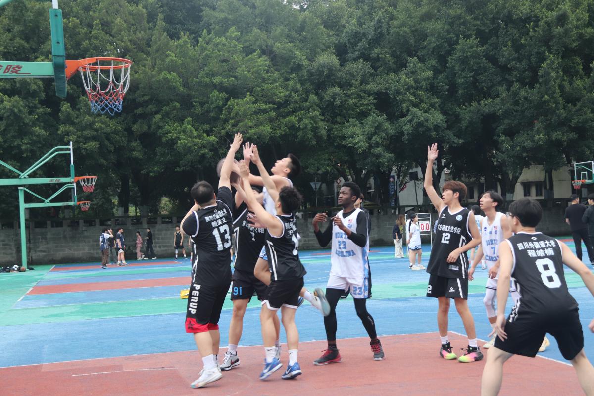 比赛伊始,双方便迅速展开激烈交锋,场上对抗节奏拉满,攻防往来十分迅速。我院男篮球员们士气高昂,在赛场上全力出击,找准机会果断突破得分,团队配合流畅有序,凭借犀利的反击多次撕开对手防线。面对东语学院男篮的强势防守,我院队员毫不退缩,沉着应对,凭借顽强的防守与快速反击紧咬比分,不让分差轻易拉开。下半场比赛,我院男篮及时调整状态,全力发起追分攻势,每一位球员都拼尽全力,在攻防两端全力以赴,不放过任何一个得分机会。全场比赛结束,我学院男篮以48:49一分之差,惜败于东语学院男篮。