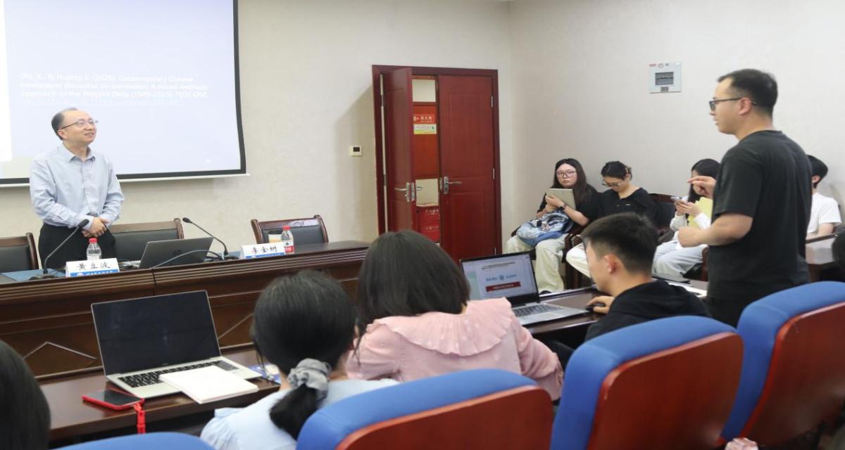 现场提问交流环节,师生踊跃发言,围绕川渝方言文化与方言翻译的语料库研究、研究分期依据、量化与质化分析矛盾等问题展开深入探讨。黄立波教授一一进行解答,强调要坚持实事求是,杜绝数据篡改,并建议通过调整分析参数、回归文本、深挖差异根源等方式来破解难题。