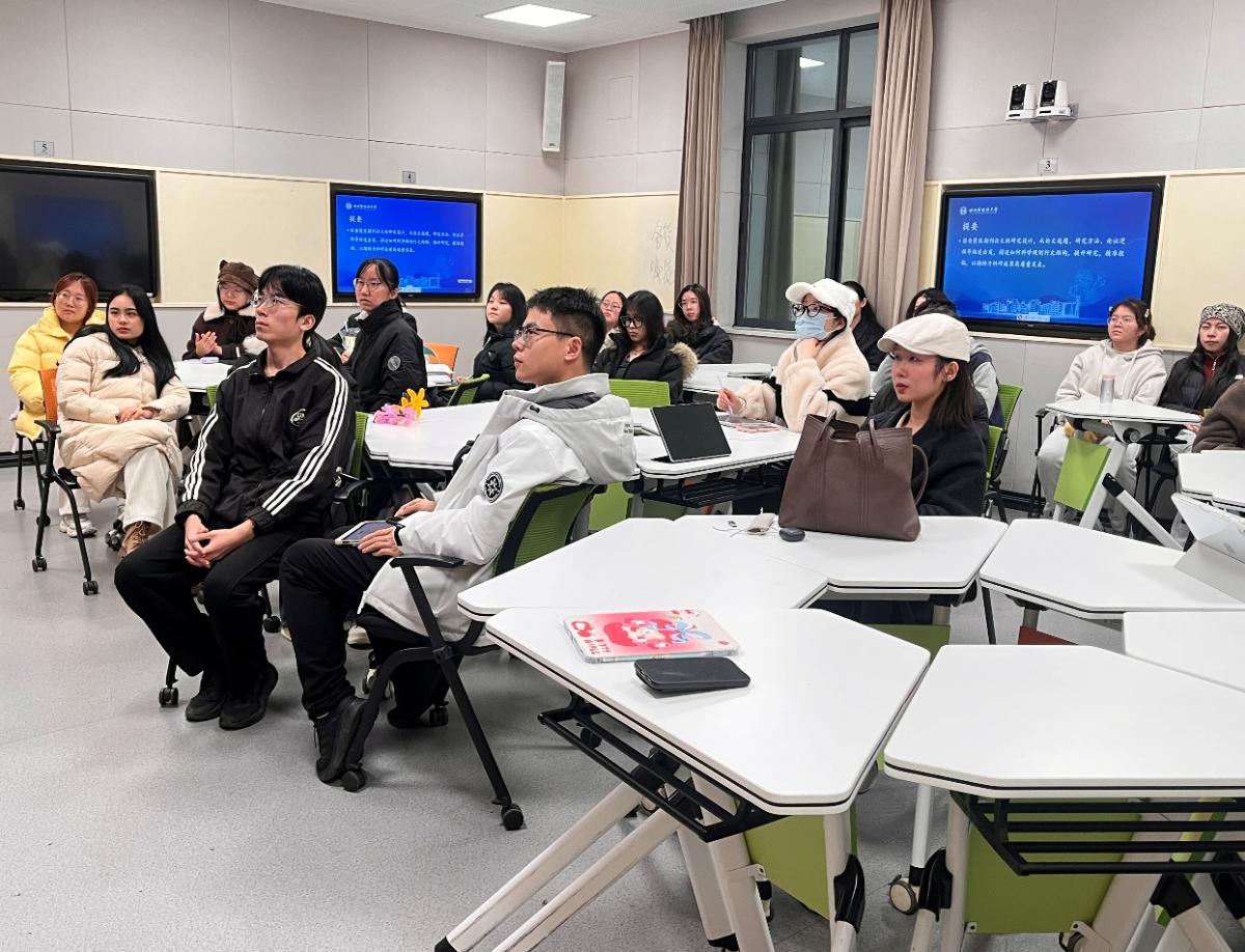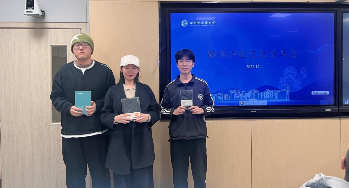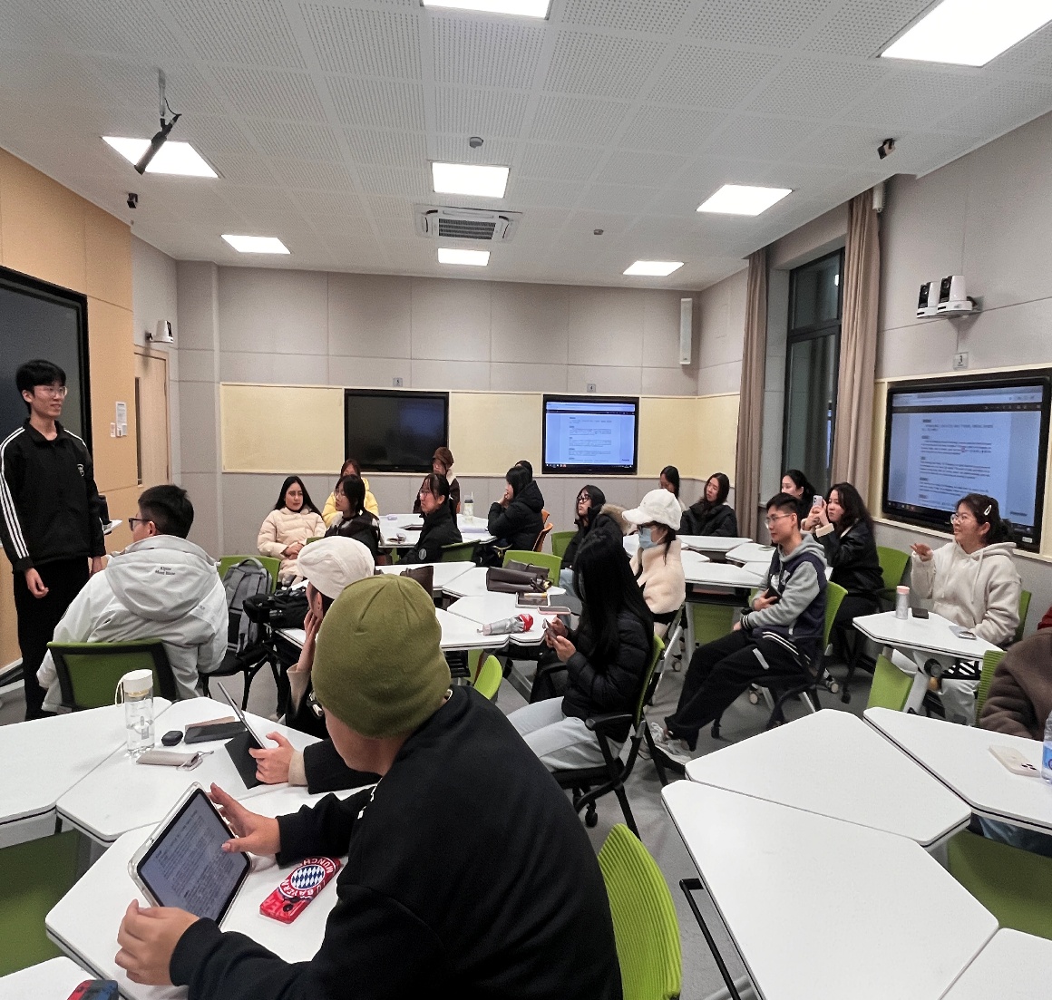 12月12日晚,翻译协会会长赵新雷、副会长谢婕,以及20余名翻协成员相聚于歌乐楼A-607,成功进行了一场内容充实、氛围热烈的交流分享会。分享会为协会成员们搭建了一个交流心得、碰撞思想的平台,成员们于此共同探索语言转换的艺术魅力与翻译发展的多元可能。本次分享会由翻译学院24级英语笔译专业研究生谢婕主持,成员们积极发言,现场始终洋溢着热烈而活泼的氛围。