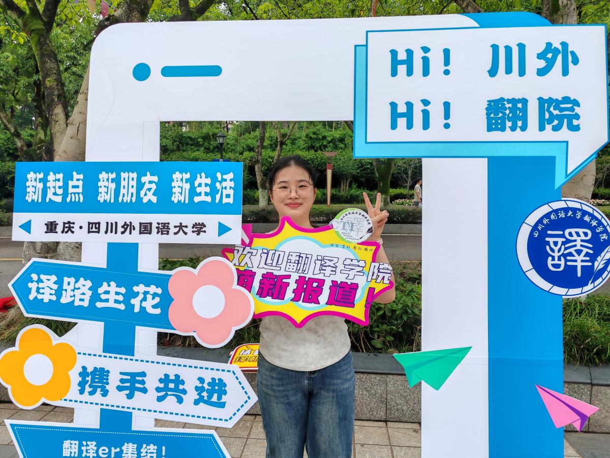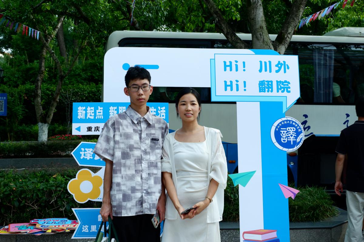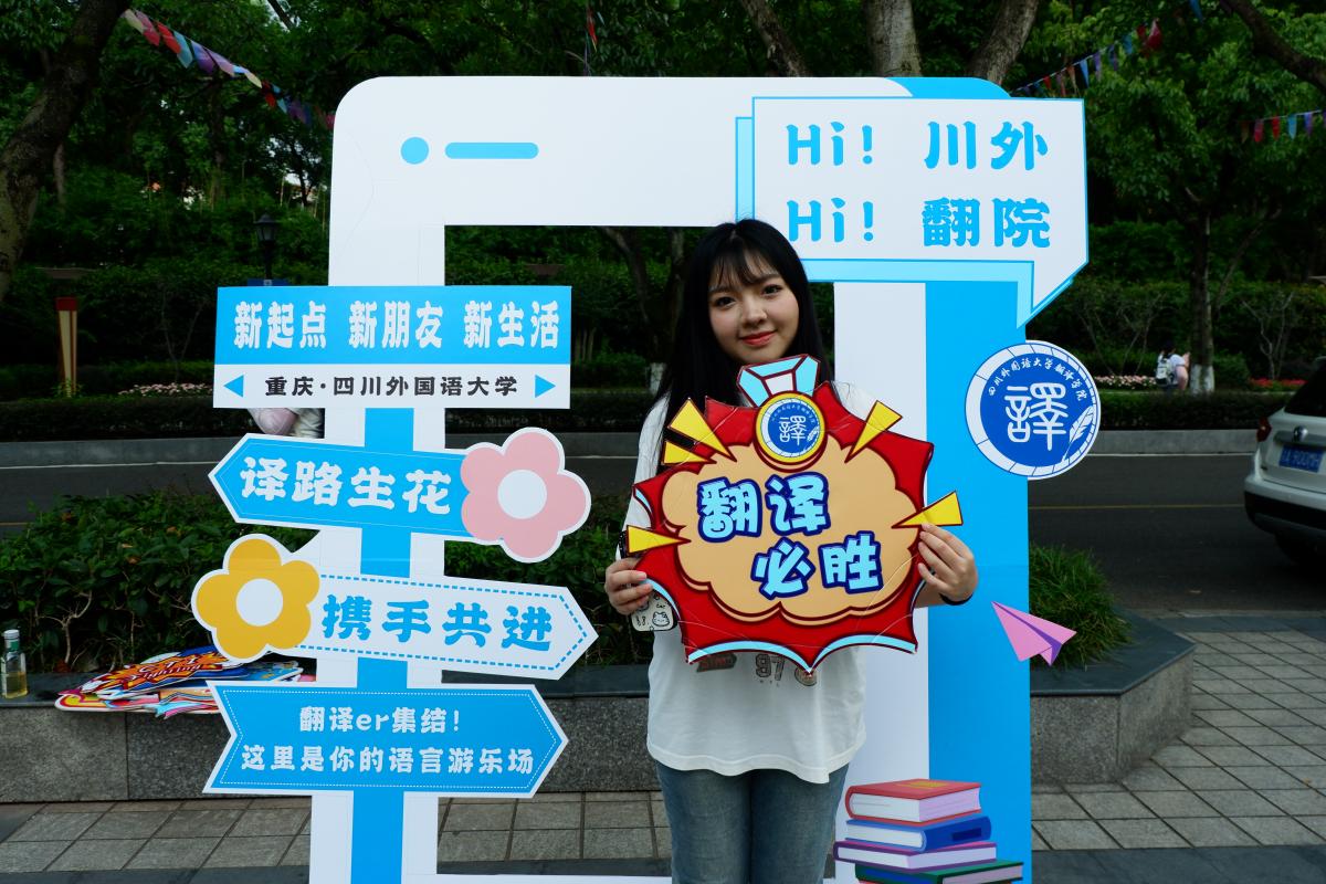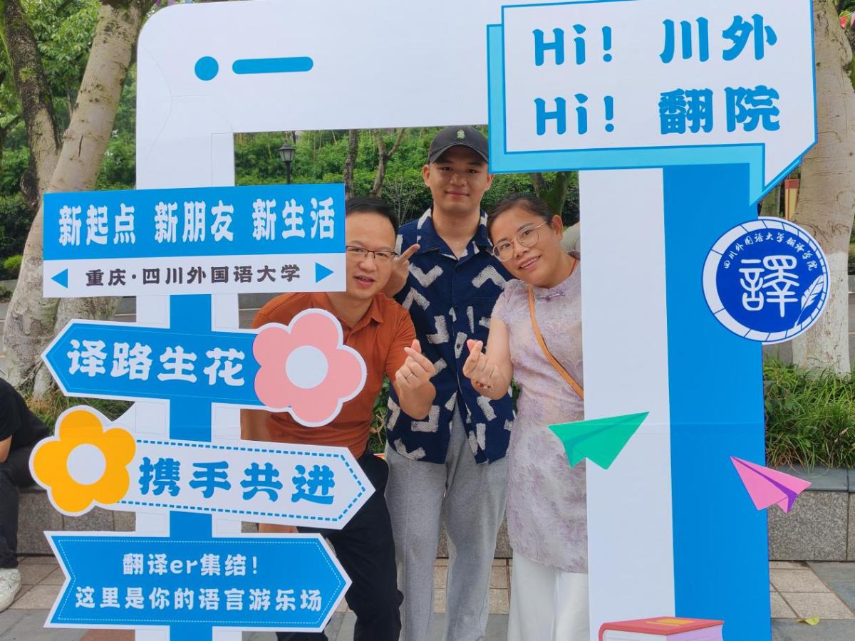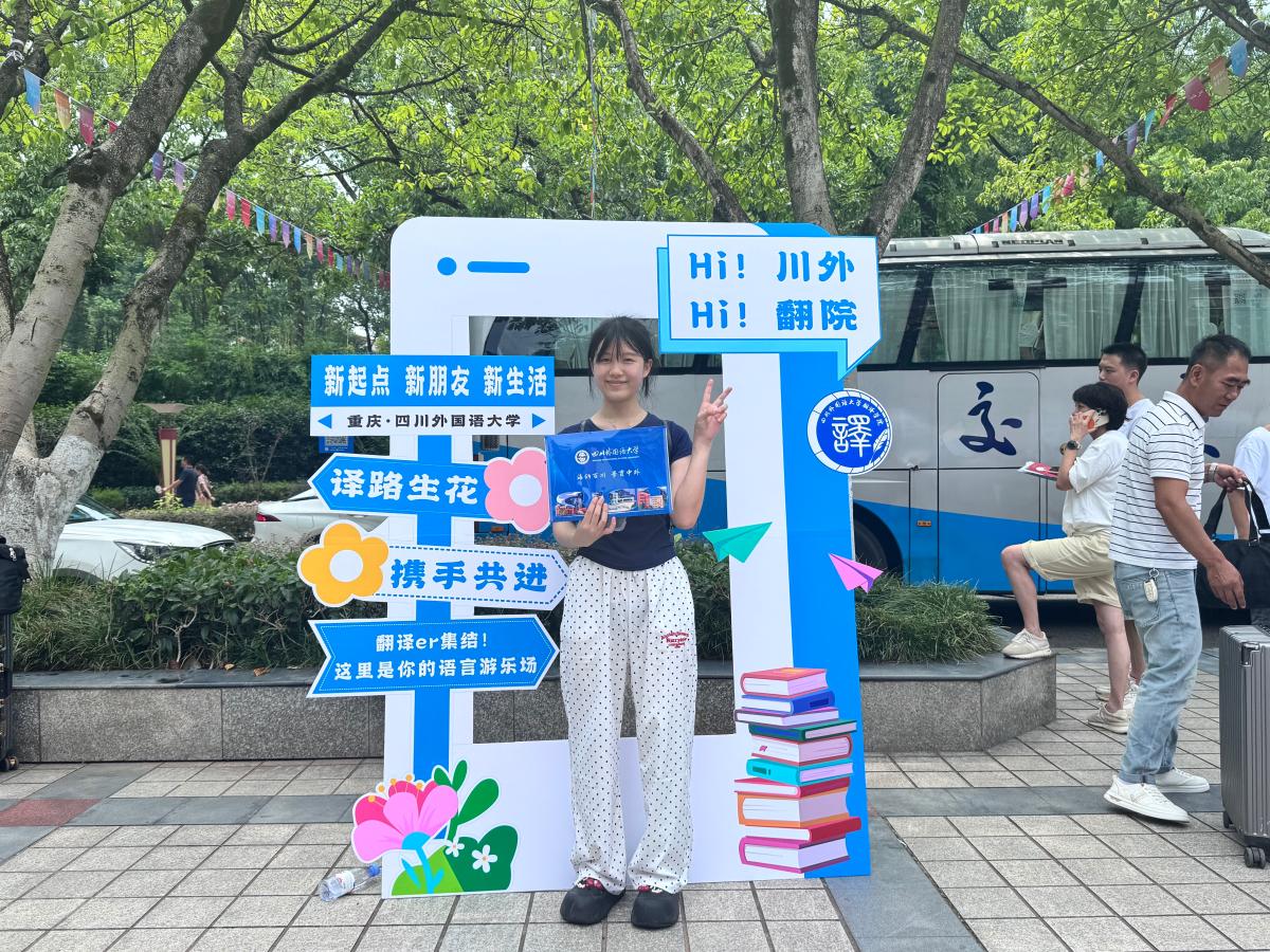 欢迎来到翻译学院,我们相聚在这里用一张照片开启全新的大学篇章吧!迎新现场特色展板和趣味拍照打卡框吸引着新生和家长们纷纷驻足合影留念。