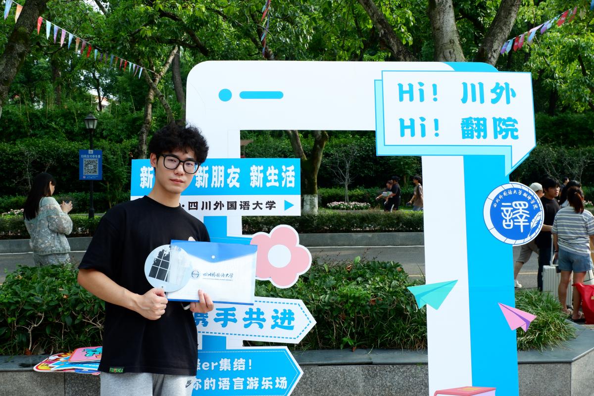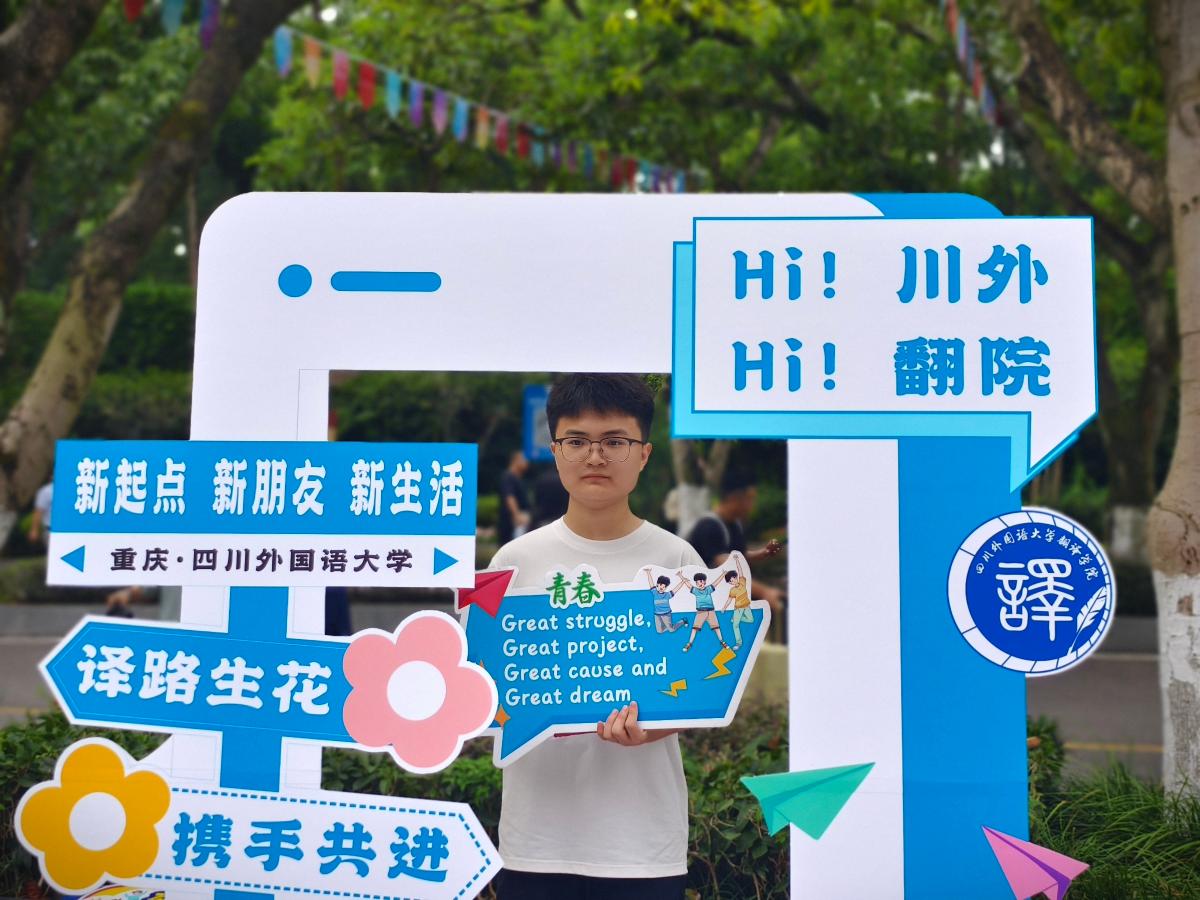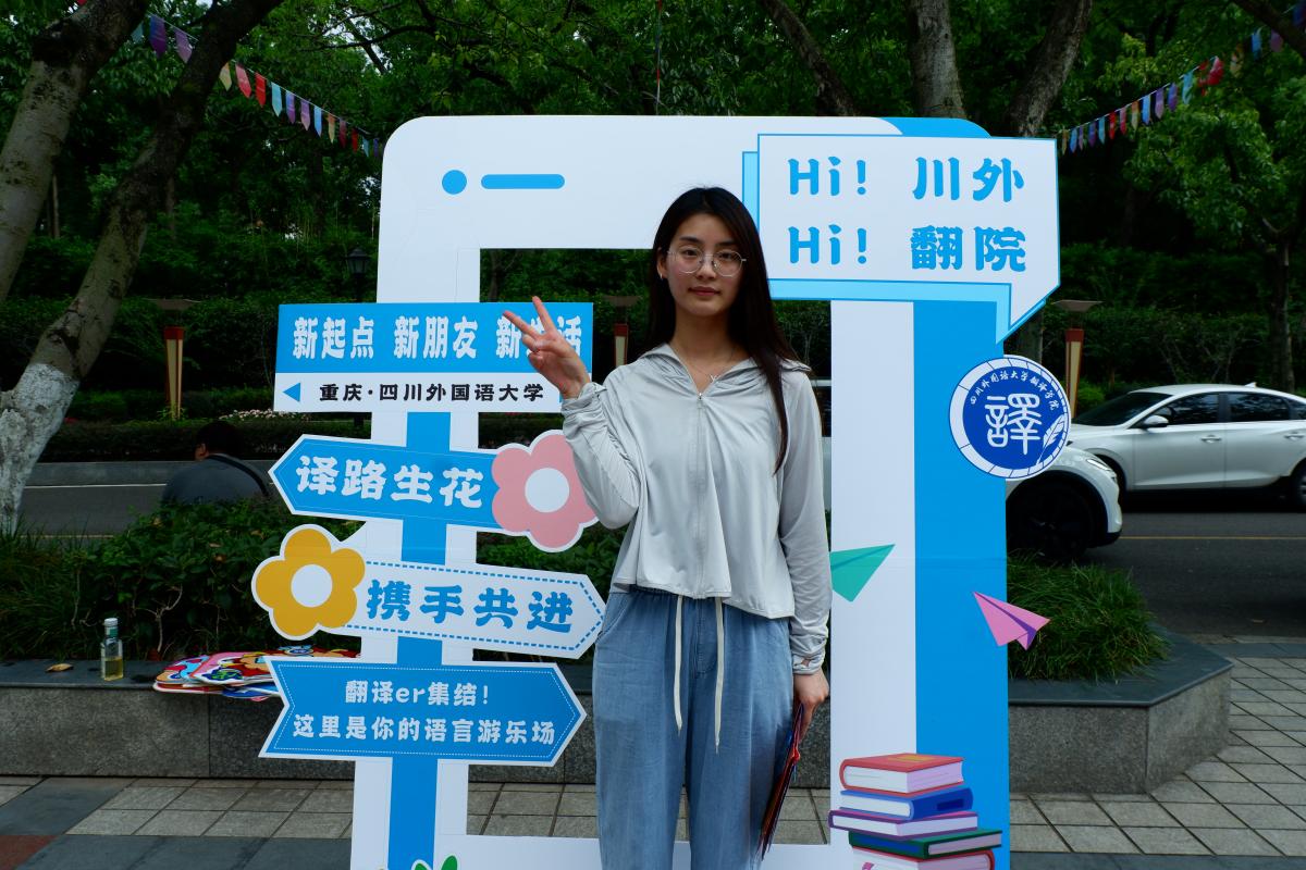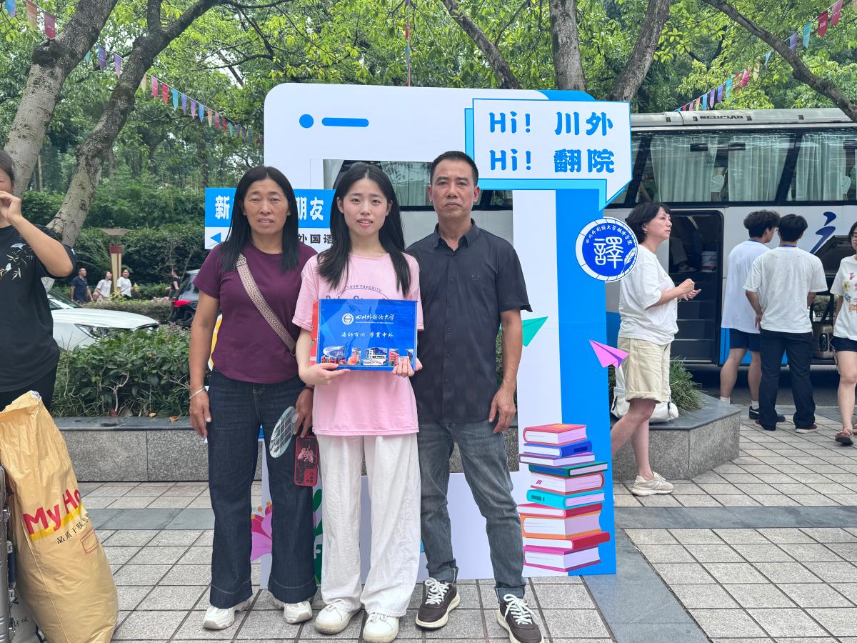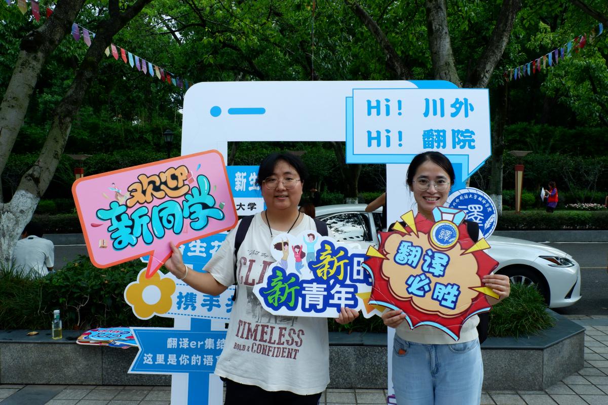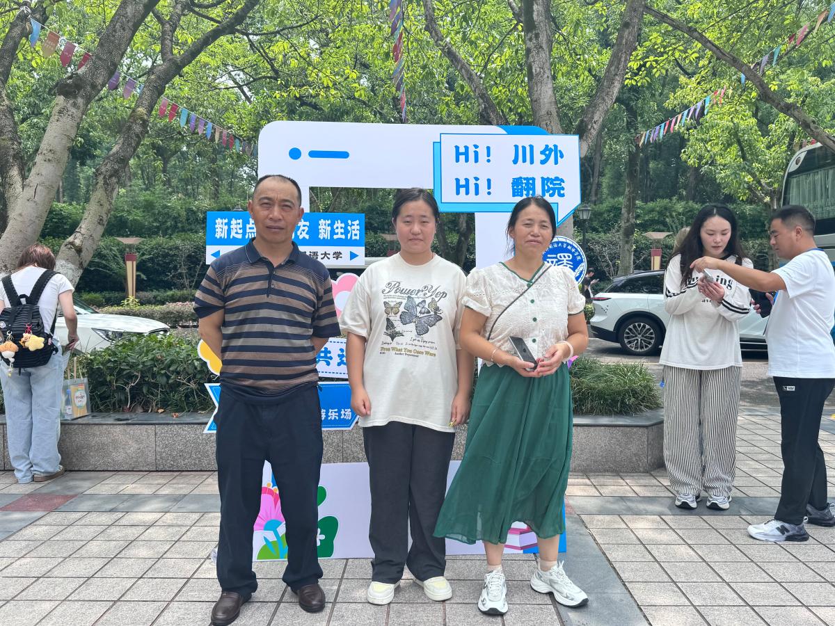 欢迎来到翻译学院,我们相聚在这里用一张照片开启全新的大学篇章吧!迎新现场特色展板和趣味拍照打卡框吸引着新生和家长们纷纷驻足合影留念。