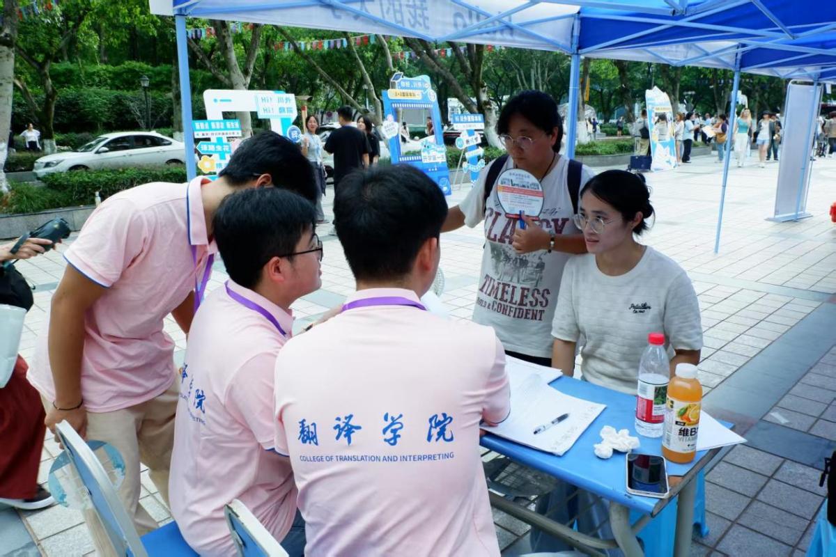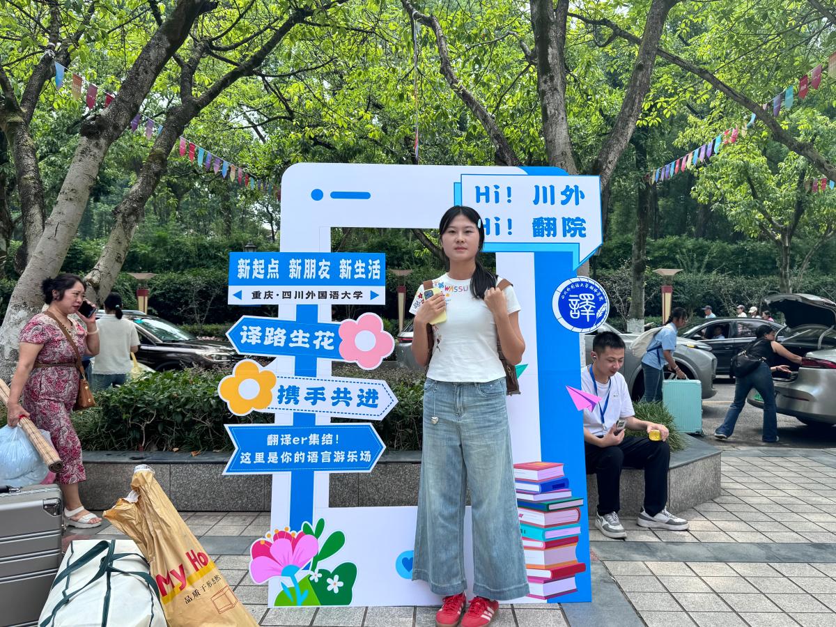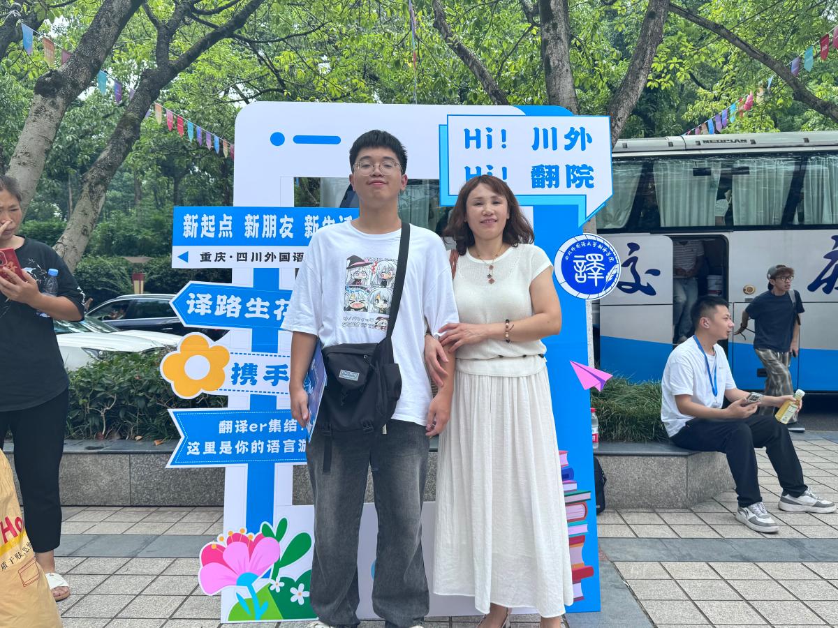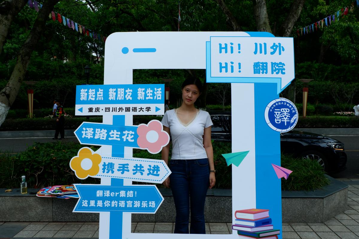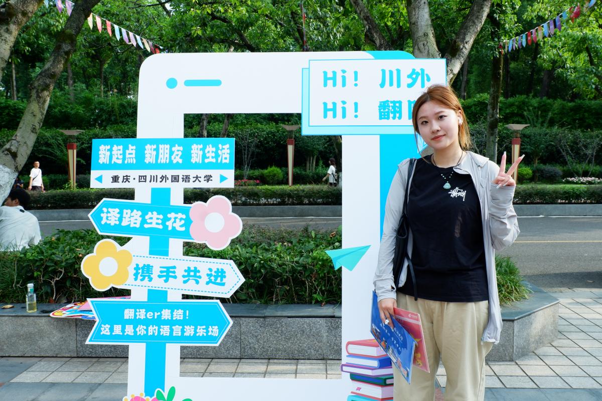 欢迎来到翻译学院,我们相聚在这里用一张照片开启全新的大学篇章吧!迎新现场特色展板和趣味拍照打卡框吸引着新生和家长们纷纷驻足合影留念。