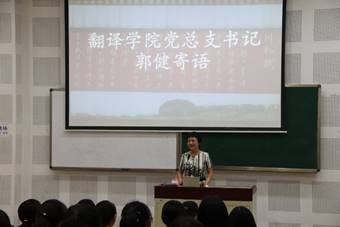 最后,郭健书记和胡安江院长也相继致辞,对新生们寄予厚望。希望他们在大学四年里,不仅要潜心学业,还要有社会担当,要做一个有恒心、有毅力、有责任心的人。而翻译学院这个大家庭,将会竭尽所能为同学们提供优质、广阔的平台,使同学们大展身手、挥斥方遒。