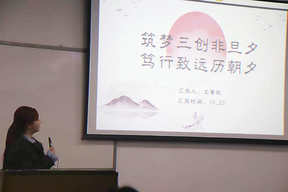 2025年10月23日晚,翻译学院第二十三期朋辈学堂在培英楼顺利举行,本次活动邀请到2023级本科生王馨悦同学,分享参加第十五届全国大学生电子商务“创新、创意及创业”挑战赛的亲身经历与宝贵经验。