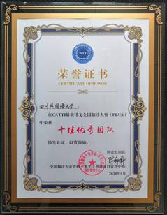 经专家评选、大众投票等环节,我校以高票当选CATTI最美译文全国翻译大赛“十佳优秀团队”。此次大赛展现了我校学生扎实的翻译素养,以及勤于实践、勇于竞技的精神风貌,反映了我校在翻译教学与实践领域的建设成果。