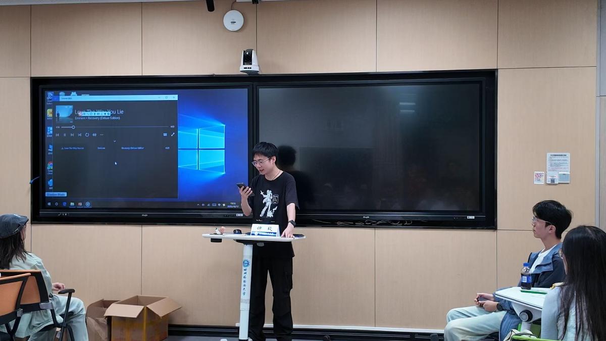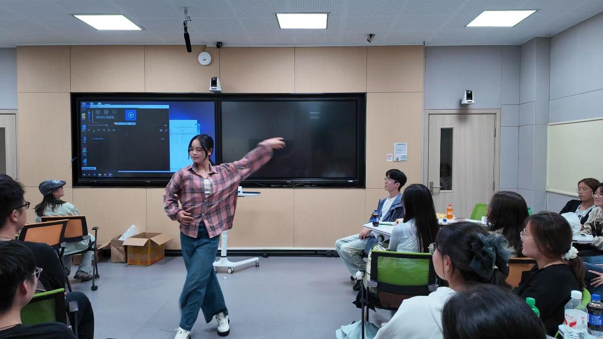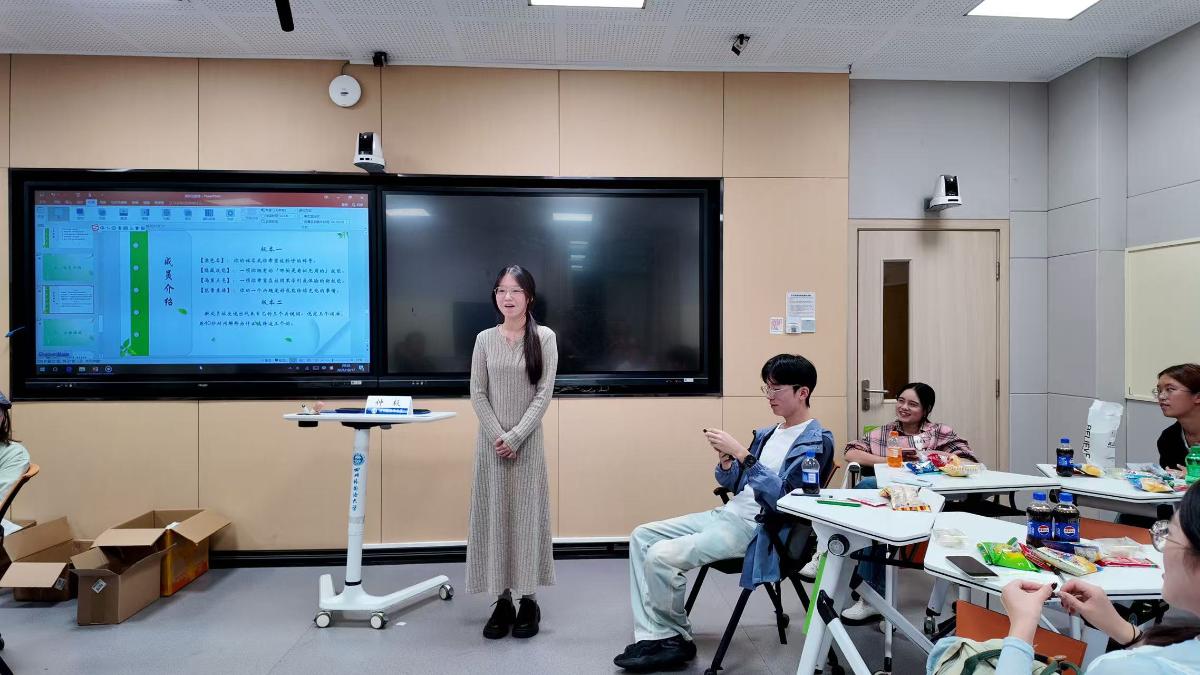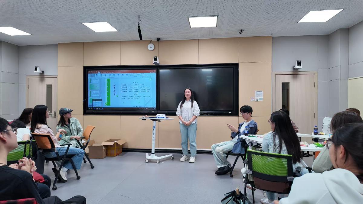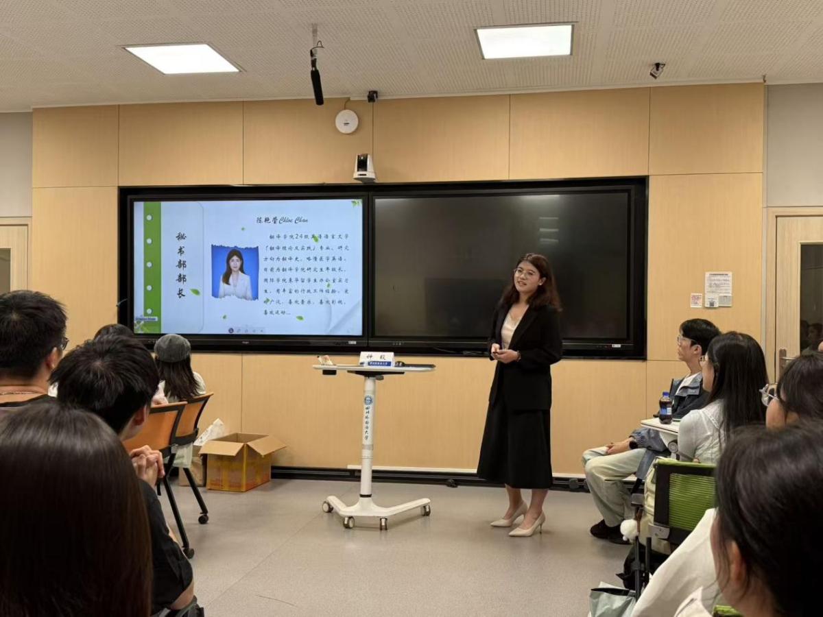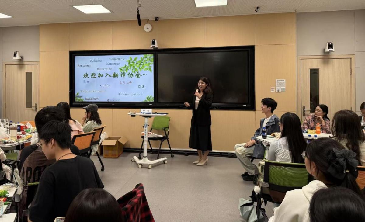 在热烈的掌声中,陈艳莹向新生详细介绍翻译协会的“前世今生”与核心定位。“翻译协会成立于2010年,隶属于翻译学院,是校级学术类社团。我们的宗旨是‘理论与实践并重,强化翻译技能,拓展认知空间,弘扬优秀文化,促进思想交融’。近年来,协会组织和举办了各类学术性讲座、实践类活动分享......”陈艳莹的介绍既专业又生动,让新生对协会活动有了更具体的认识。