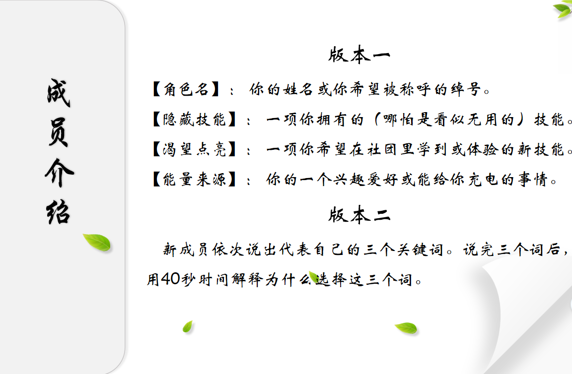 “成员介绍”后是“互动游戏”环节,两个“轻量级”游戏让新生“快速熟悉”: