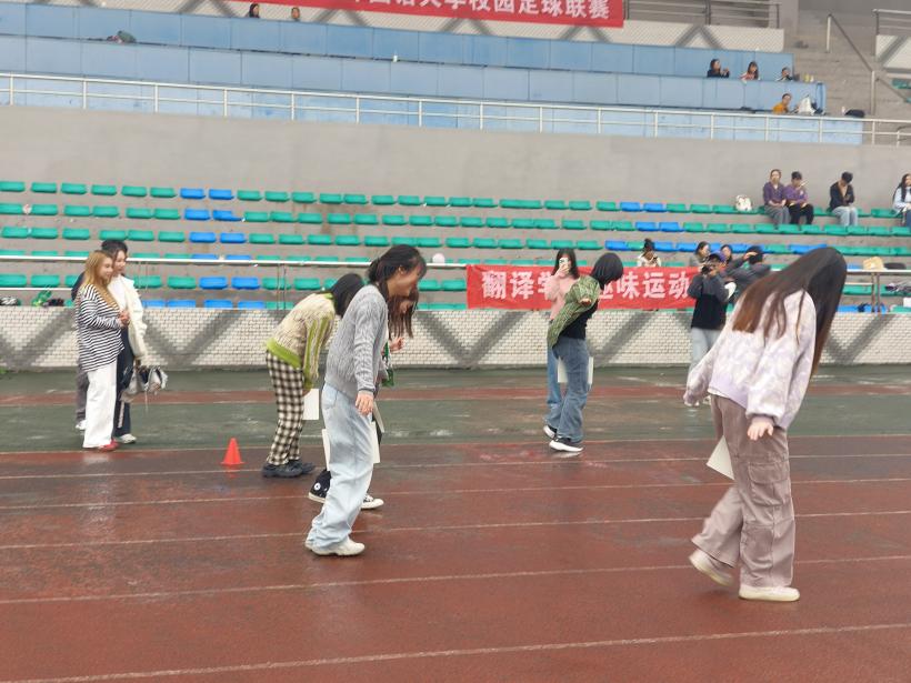 同时作为工作人员和参赛选手,2024级笔译3班的潘美利同学表示:“我能感受到同学们在现场的热情,并且我也能融入其中。我发现,‘一圈到底’项目需要队友间快速反应,我们互相提醒调整动作,最终拿到了不错的成绩,感受到了彼此信任的力量。”