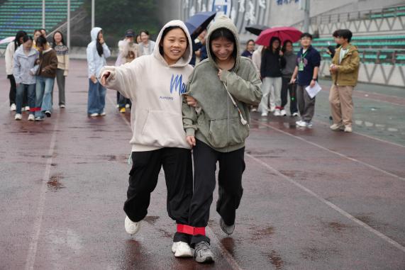 团体赛中,“两人三足”考验协作能力,选手们捆绑脚踝协同前行;“一圈到底”“背对背拥抱”“筷子功夫”“纸杯叠放乐”等项目,综合考察团队配合力。同学们踊跃参与,热情高涨,在比赛中展现出蓬勃的朝气与良好的团队精神。整个赛场洋溢着欢乐与友谊的气氛。