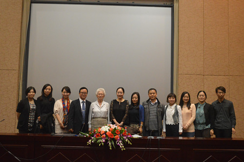2015年10月26日(星期一)上午10:00,著名法国翻译理论家、巴黎高等翻译学校前校长、释意学派创始人玛丽雅娜·勒代雷(Marianne Lederer)教授莅临我校,在宏文楼二楼国际报告厅做了题为“职业化时代译员的素养及翻译能力培养”的专题讲座。讲座由翻译学院院长祝朝伟教授主持,我校MTI硕士生导师张鹏、赵奂、唐昉、丁小洹,一线口笔译教师秦勤、罗玉婧、朱雪莲、谭万文、黄钰洁、闫波、文雅、周平、刘芳、李海英、叶晓英及近200名学生聆听了讲座。