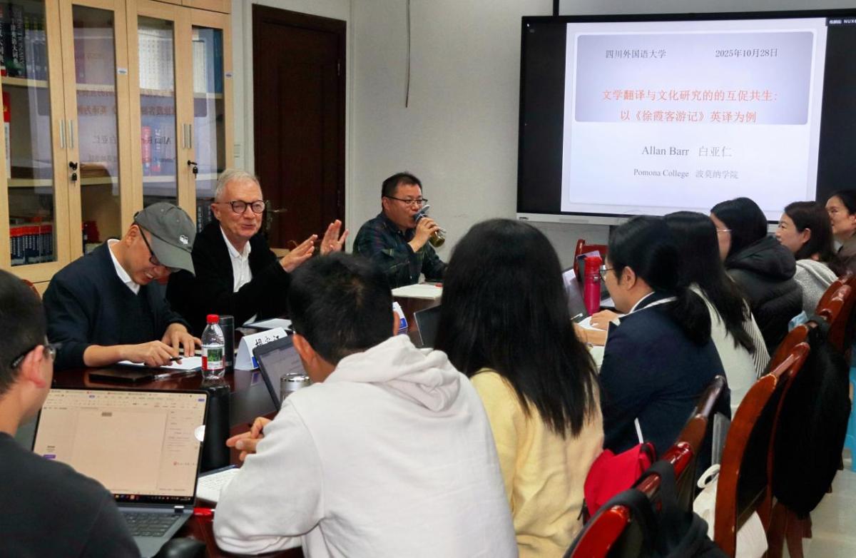 10月28日上午,知名汉学家、翻译家白亚仁教授应邀为我院师生做了题为“文学翻译与文化研究的互促共生:以《徐霞客游记》英译为例”的学术讲座。校党委常委、副校长胡安江教授主持本次讲座。